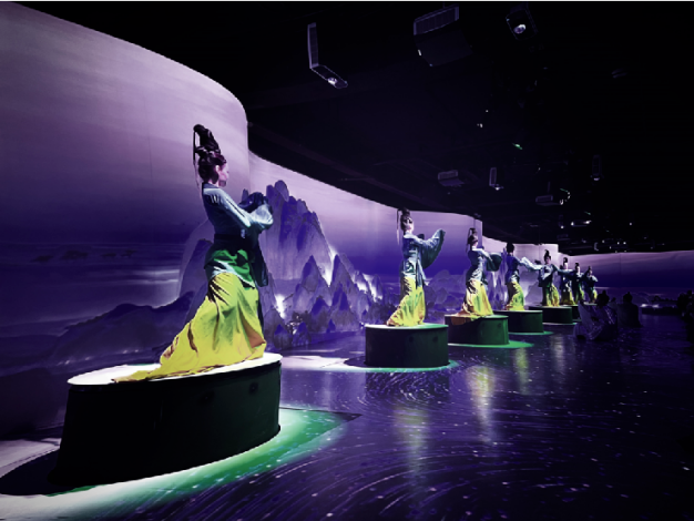 为了让国家宝藏“活起来”,让更多人一览传世国宝的风采,展演采用多台超清投影,融合VR、全息、升降等舞美技术,打破时空屏障,对国宝级文物进行创新性开发与创造性诠释,在宫宴现场打造“一朝步入画卷,一日梦回千年”的沉浸氛围,给观众营造了集视、听、触于一体的高品质的文化艺术体验之旅。